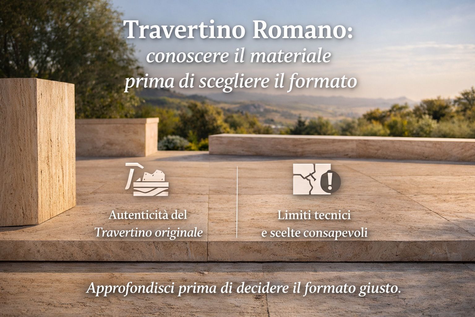 Grandi formati e spessori ridotti non sono una variante del Travertino Romano, ma una richiesta diversa che richiede materiali diversi.